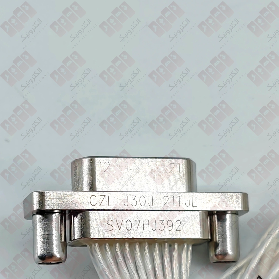 کانکتور J30J-21TJL-100 بیست ویک عدد پین نری دارد و توسط دو اسپیسر کناری به کانکتور مقابل خود وصل می شود که احتمال جدا شدن آن در شرایط جوی دشوار را به حداقل می رساند . از ویژگی های این کانکتور می توان به مقاومت بالای آن در برابر دما و ارتعاشات و همچنین نصب آسان آن اشاره کرد . سیم نسوز متصل شده به این کانکتور به نام AFR250 می باشد و شامل سی رشته نقره اندود با روکش تفلن می باشد. طول سیم این کانکتور 100 سانتی متر می باشد و ماکزیمم جریان نامی این کانکتور 3 آمپر است. ایزولاسیون بین پین ها بیش از 5000 مگا اهم می باشد و ولتاژ شکست بین پین ها 800 ولت است. در ادامه تصویری گذاشته شده است که اطلاعات پارت نامبر این نوع از محصولات را بیان می کند :